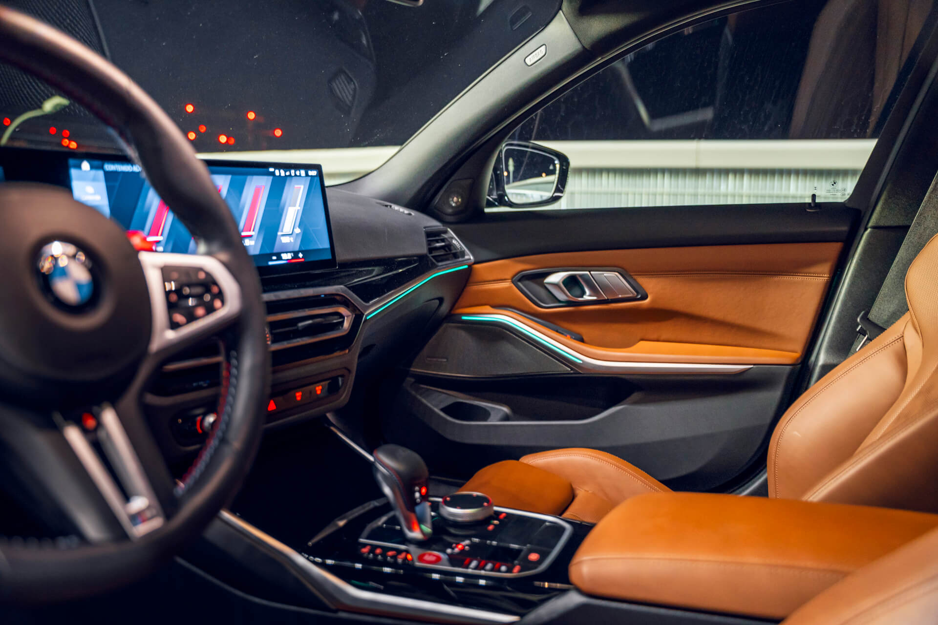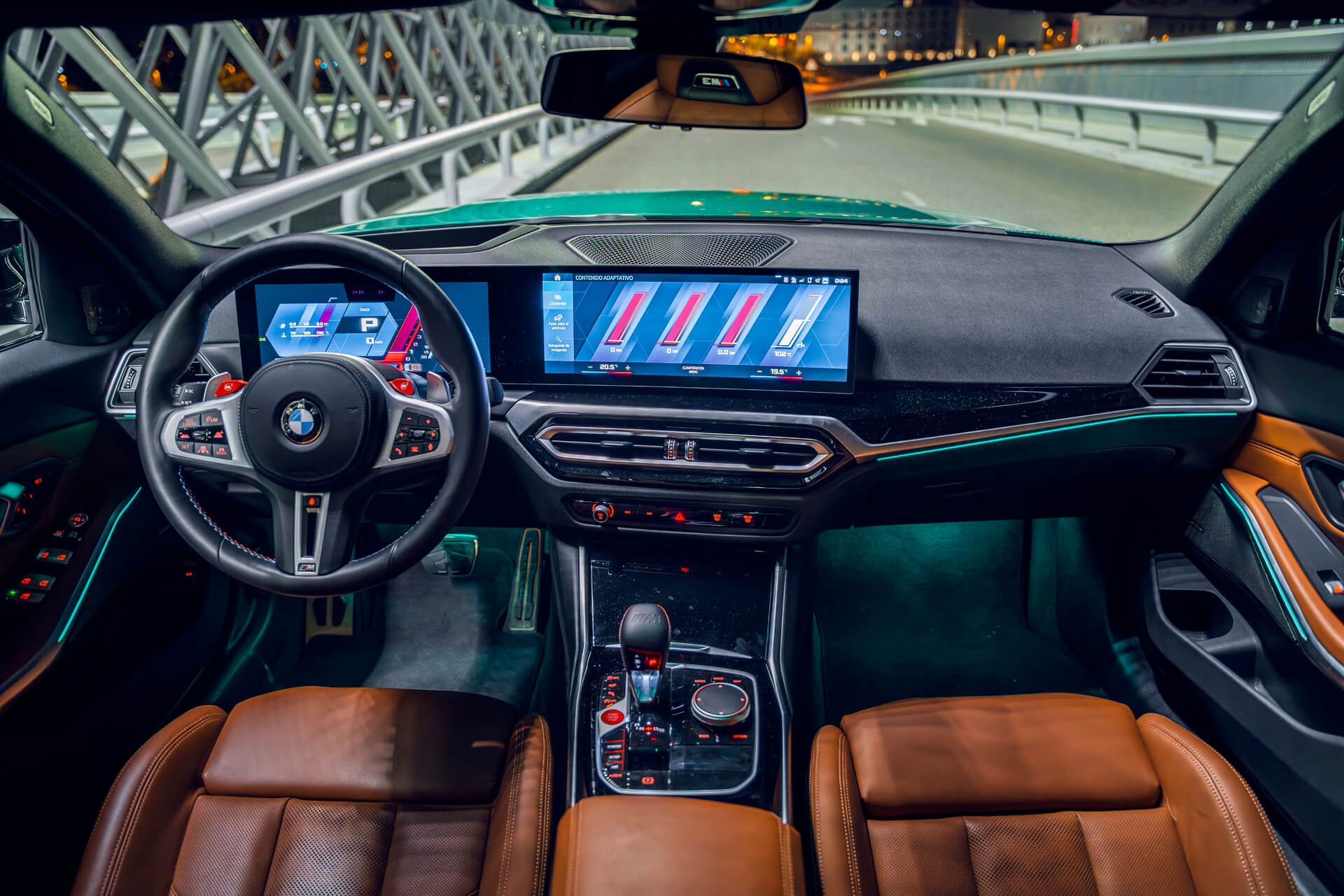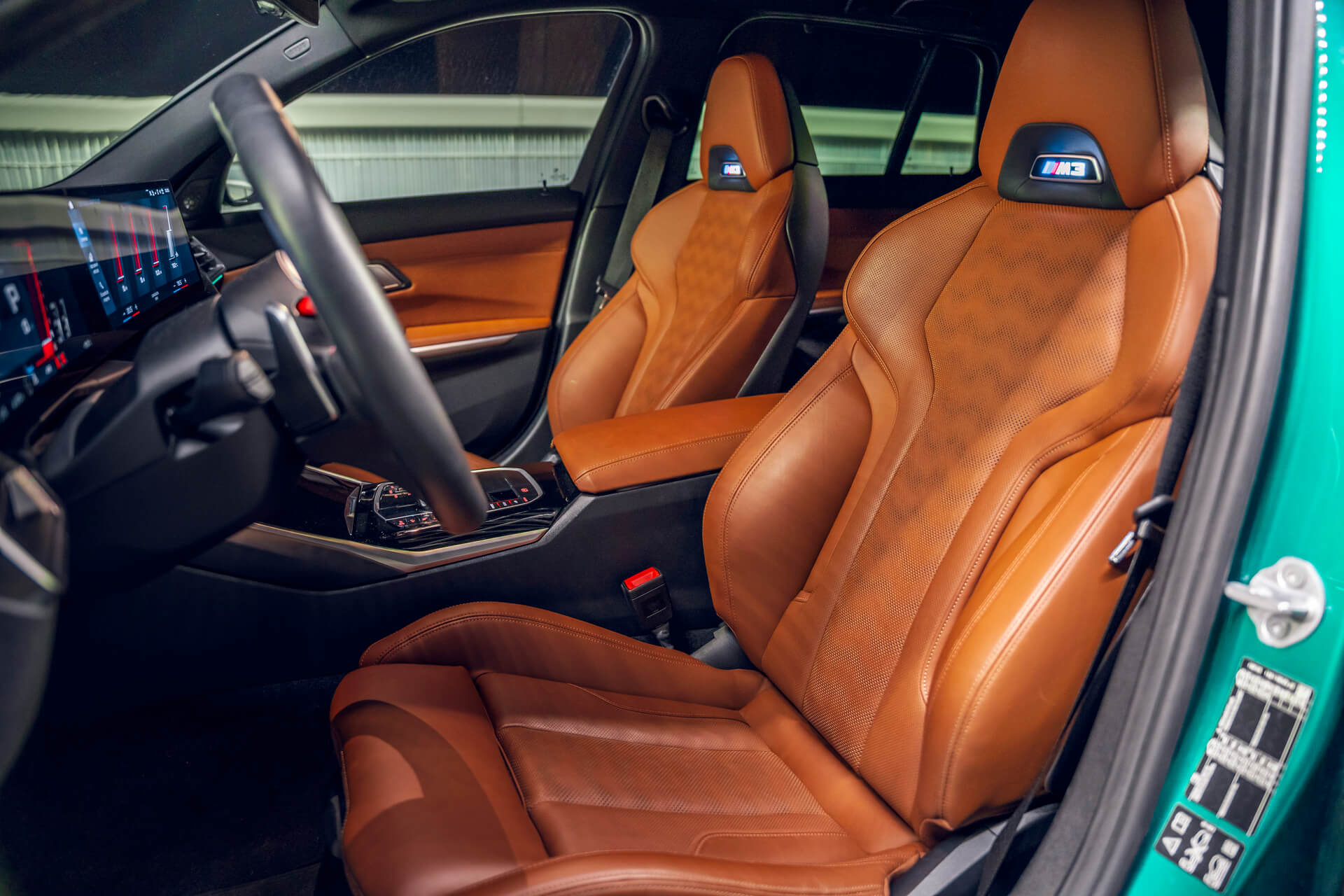El habitáculo mantiene la atmósfera deportiva del M3 sedán, con acabados premium, fibra de carbono y tecnología de última generación. El maletero y la modularidad de los asientos permiten usarlo tanto para escapadas como para el día a día sin perder el ADN de competición.