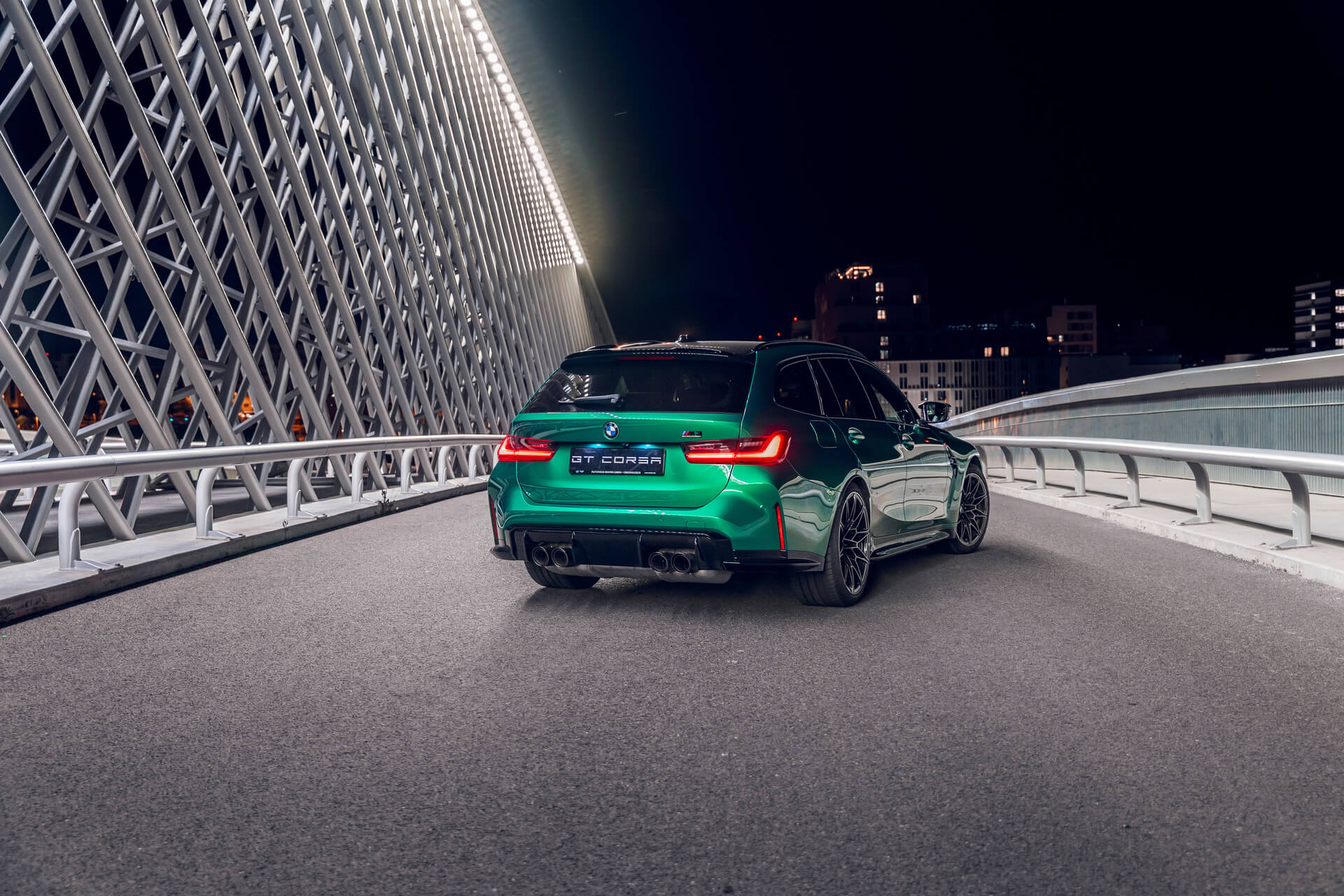 El diseño musculoso del M3 se conserva intacto en la versión Touring, con una estética que combina lo práctico con lo salvaje.